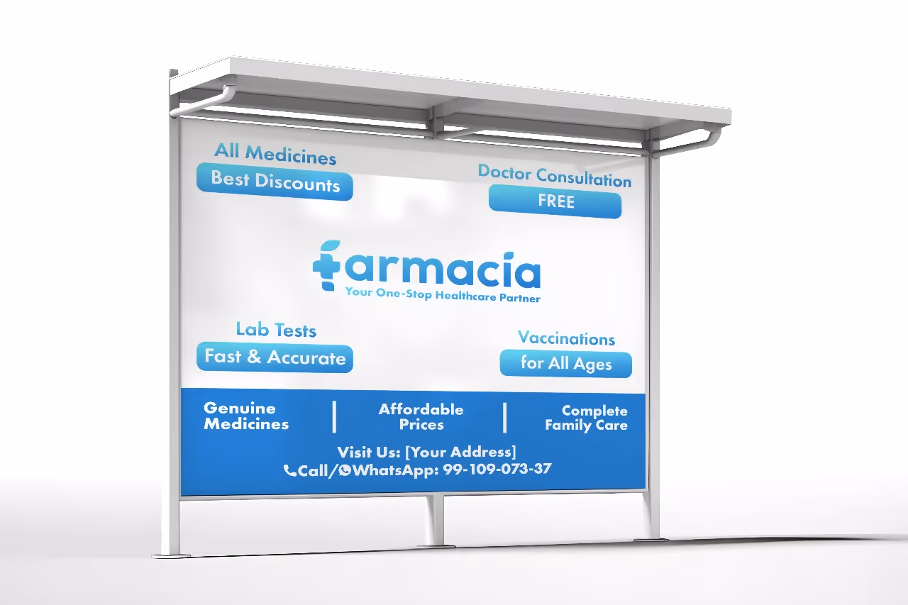 Parallel to branding, we worked on strategic positioning. Farmacia was framed as a complete healthcare destination — bringing together medicines, lab tests, and doctor consultations under one cohesive brand experience. This clarity informed both messaging and visual hierarchy across touchpoints.